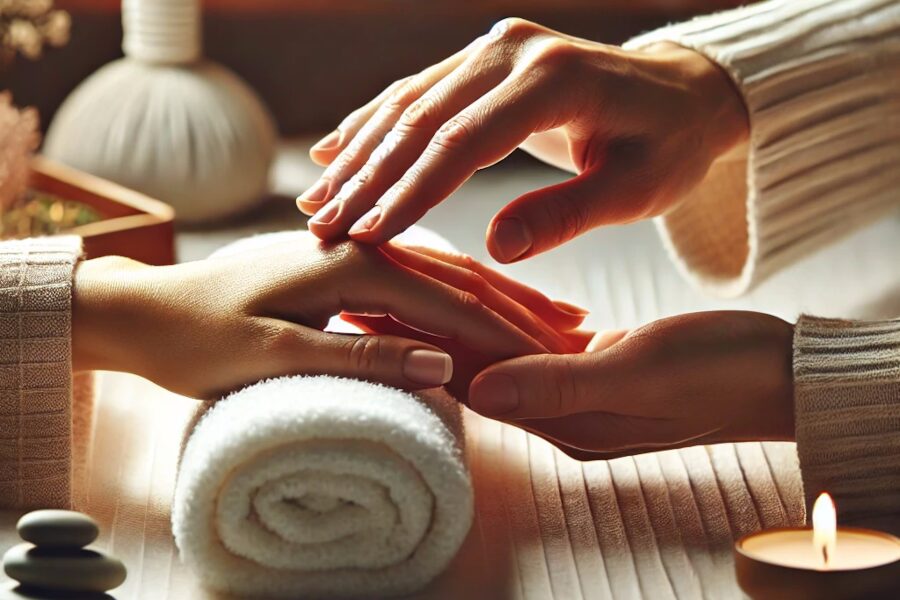 A hand massage is a soothing treatment designed to relieve tension and improve circulation in your hands and wrists. Our skilled therapists use gentle pressure, kneading, and reflexology techniques to target key muscles and joints, providing relief from stiffness, soreness, and stress. This treatment is especially beneficial for those who spend long hours using their hands or suffer from conditions like arthritis or carpal tunnel syndrome. A hand massage not only eases discomfort but also promotes relaxation and enhances overall well-being. Enjoy a moment of calm as your hands are expertly cared for, leaving them feeling refreshed, supple, and relaxed. Indulge in this revitalizing experience at our peaceful spa, where your hands get the attention they deserve